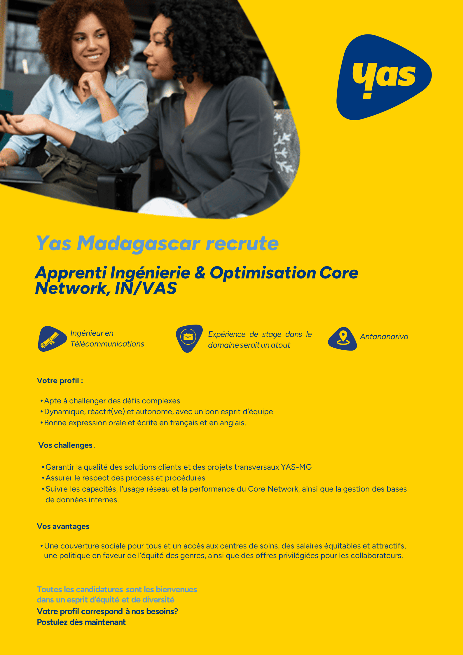 26/07/2025 |  YAS |  Contrat Temps plein / Apprenti |  Antananarivo / MDG / Campus Telma –Zone Galaxy Andraharo - Antananarivo