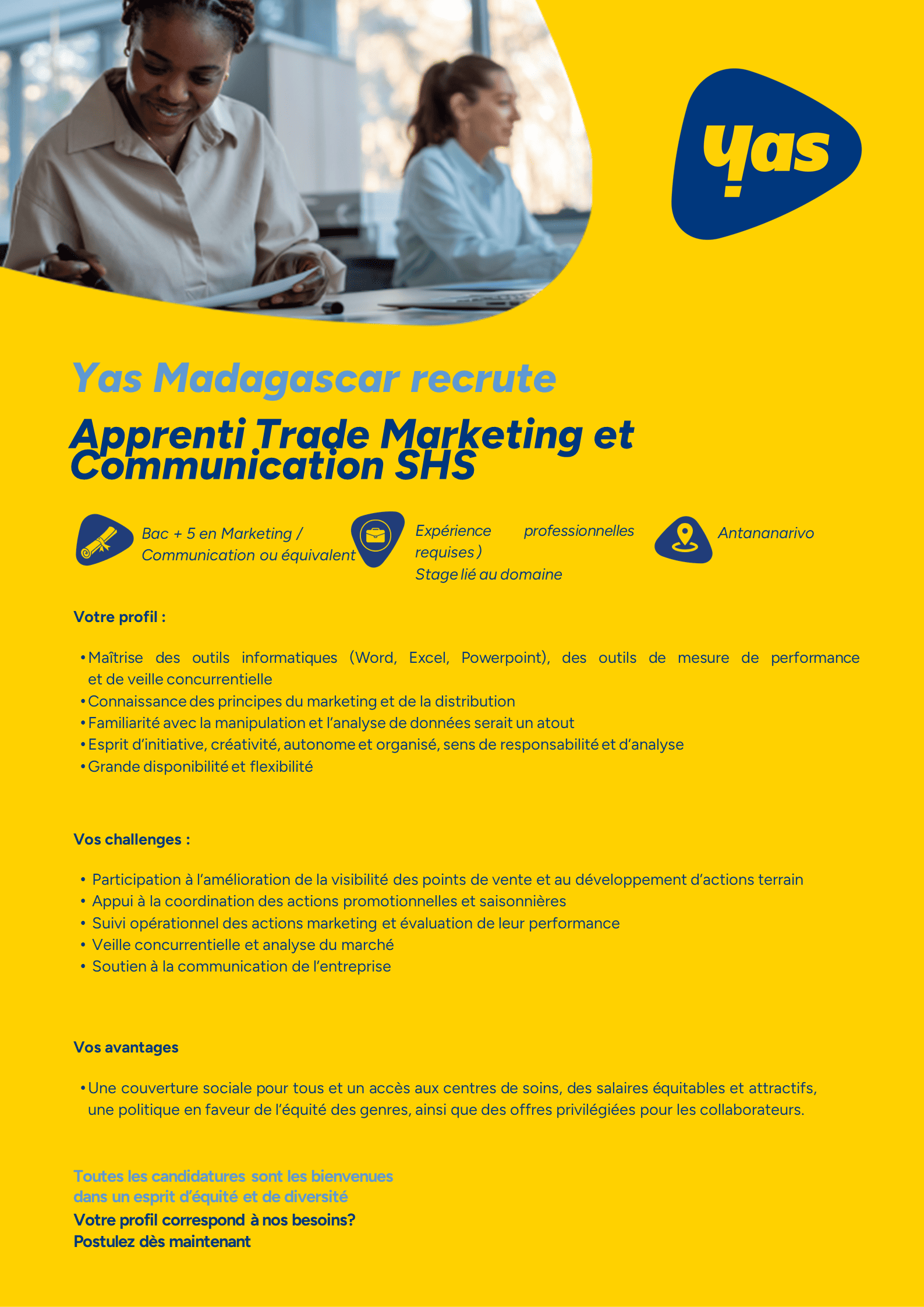 15/10/2025 |  YAS |  Contrat Temps plein / Apprenti |  Antananarivo / MDG / Campus Telma –Zone Galaxy Andraharo - Antananarivo