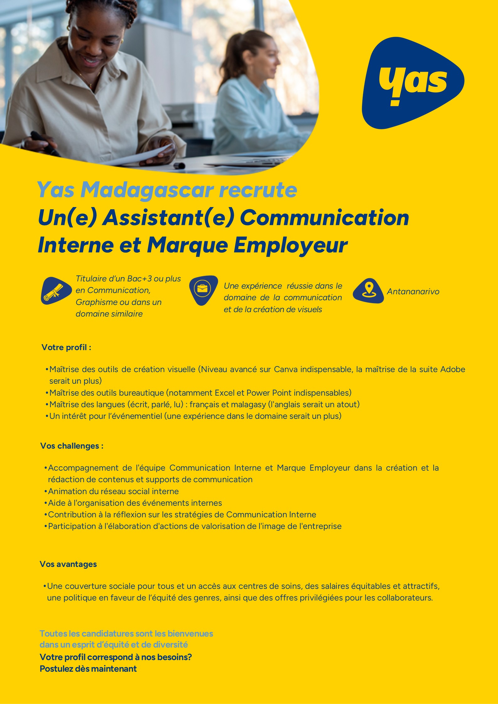 Assistant(e) Communication Interne et Marque Employeur - Antananarivo / MDG / Campus Telma –Zone Galaxy Andraharo - Antananarivo