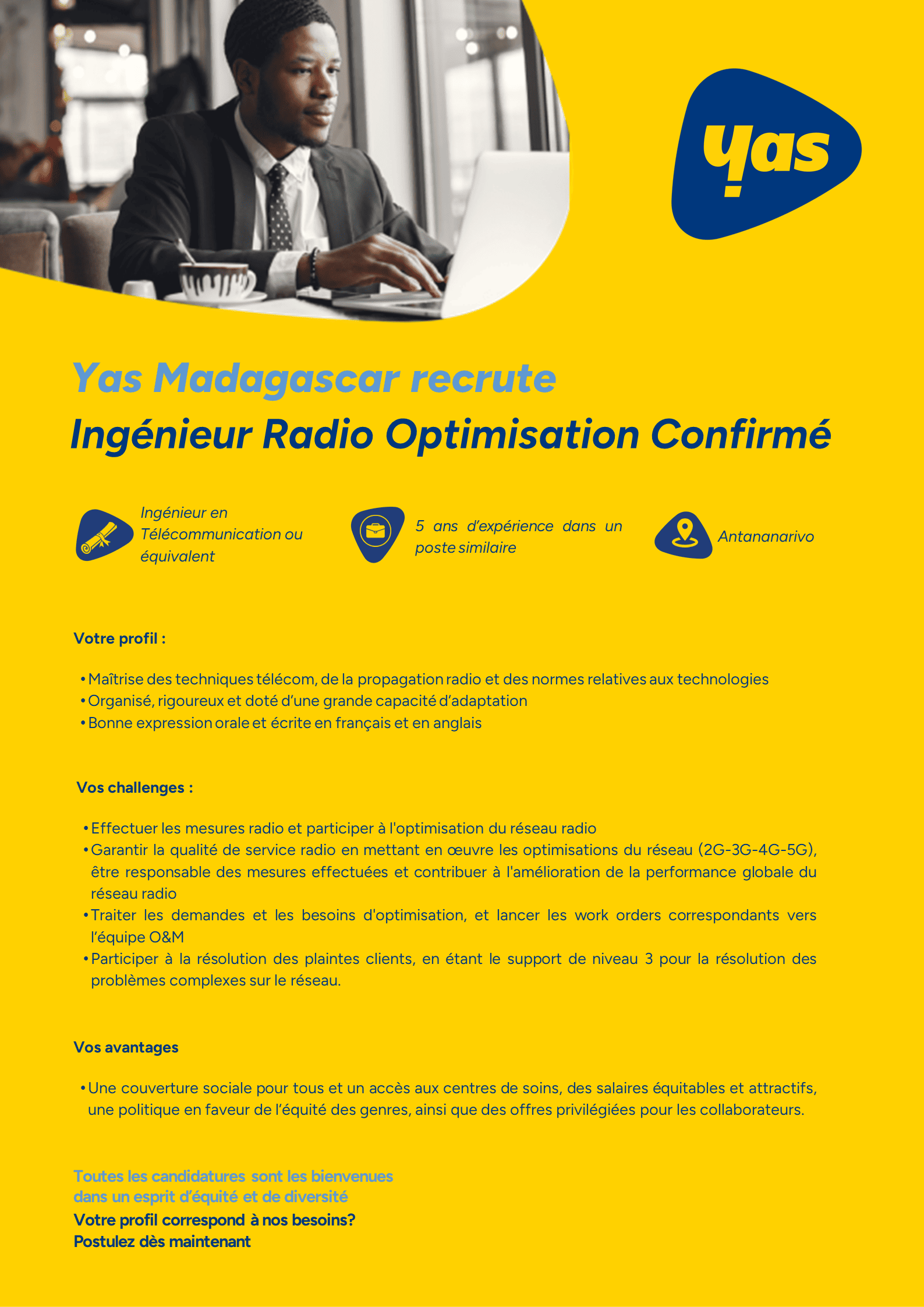 Ingénieur Radio Optimisation Confirmé - Antananarivo / MDG / Campus Telma –Zone Galaxy Andraharo - Antananarivo