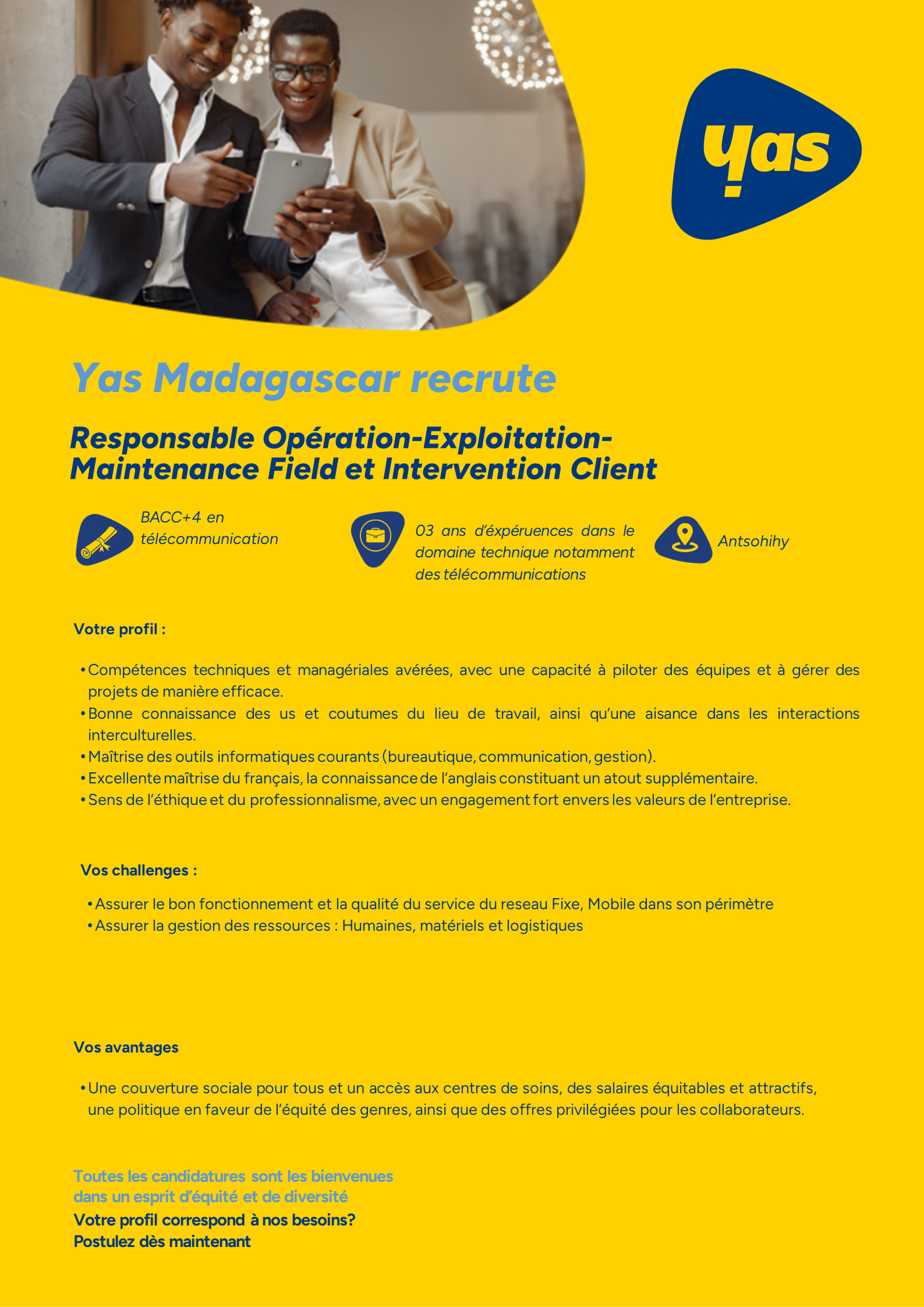 11/09/2025 |  YAS |  Contrat Temps plein / CDI |  Antananarivo / MDG / Campus Telma –Zone Galaxy Andraharo - Antananarivo